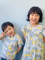 弟君とお姉ちゃん2人とも切らせてもらいました。お姉ちゃんはスーパーロングからぱっつんボブに(^^)/弟君は前髪アシンメトリーに!(^^)!2人とも可愛くなりました(^^)v