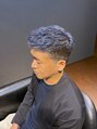 ブルー系のカラーリングは、年代を問わずかっこいい!全体をブリーチ後、ハイライトを足してカラーオンすることでコントラストを出しています。色落ちしてくると金髪のハイライトが出てきて長く楽しめます。スタイリングはトップにエアリー感を出すと◎。