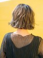 切りっぱなしボブのアレンジ。似合わせやすいアゴ下のボブライン。タイトなシルエットになるように毛量を調整しています。バングは薄めで細い束感を作れるようにしています。抜け感を作ったお手入れ簡単なボブスタイルです【ボブ/パーマ/波巻き/メッシュ】