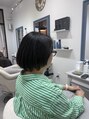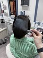 ちょっとした癖でシルエットが裾広がりになりやすくなってしまうのがお悩み。カットでも調整可能ですが、髪質改善を併用することにより、おさまりの良さと一緒に髪質の向上により艶感を出し、艶々でまとまりやすいボブにいたしました。