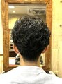 トップ強めに徐々にゆるくカールをつけて自然な仕上がりに♪サイド襟足をスッキリ仕上げてメリハリのあるメンズパーマスタイルです!