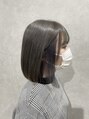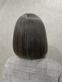 ボブカット+ブリーチ+ONカラーデザイン2色+トリートメント イヤリングカラー ネイビーカラー グレー