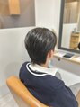 襟足は伸ばしているので整えるくらいのミニウルフ。久しぶりに前髪を作りたいということだったので上げも下ろしもできる長さで前髪を作りました!ジェンダーレスなスタイルは大変人気です♪