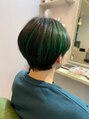 グリーンのハイライトとブルーブラックのメンズマッシュ