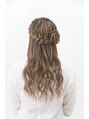 前から見えるように編み込みをしてサイドで可愛くお花を作りました。 ハーフアップなのでかっちりし過ぎず、デートやイベント、パーティなどにおすすめです!