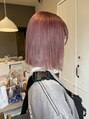 ピンクベージュ 切りっぱなしボブ ハイトーンカラー