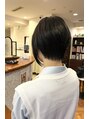 髪質、生え方、骨格に合わせたウルフカットをベースに前下がりボブの質感が出るようグラデーションカットで調整しました。