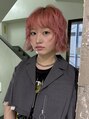 2ブリーチしています。発色のいい特殊なお薬を混ぜて、濃いめの桜ピンクに◎フロントは眉くらいの長さにカットして、流してスタイリングしました!