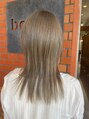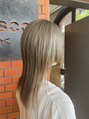 地毛の黒髪からブリーチを1回してから、全体をシルバーアッシュ8トーンで被せました。
