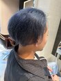 癖があるお客様で、一度のブリーチで濃いめの青に