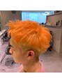刈り上げを少し長く残して上の部分との色の差を出しています!上がオレンジで下を白っぽくして周りとあまり被らないスタイルになっています!