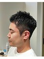 夏に向けての刈り上げスタイルになります。こちらのお客様は5月半ばに切らせていただきました。暖かい時期から暑くなる時期に向けて徐々に短くできるよう、サイドの長さをまだ刈れる長さに残しております。サイドの膨らみが気になる方に向いてます。