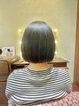 首周りスッキリさせた短めボブスタイル少し落ち着いた明るさの寒色系ブラウンになっています。