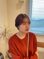 ブリーチありのnavy blue colorです!顔まわりカットで一癖あるhairに....