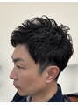 裾は6mmで刈り上げのツーブロック。上は7~8cmでアイロンで動きを出して。ホットパーマの特徴で濡れている時より乾いている時の方がパーマがしっかり出てくるのでスタイリングしていない時でも勝手に形が出来てくれるのでスタイリングが楽になります。