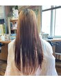 ブリーチ履歴ありのカラーです!ブリーチをやめていくので新生部の黒髪とブリーチ毛の色を馴染ませ仕上げました♪透け感、柔らかい色味のカーキベージュです^ ^