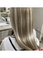 全体にブリーチでベースを作ってから太めのホワイトメッシュでハイトーンのベースカラーとのコントラストをしっかり出したデザイン♪