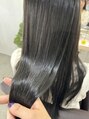 美髪縮毛矯正とカラーの組み合わせです。グレーをベースにカーキもいれて、透明感のある暗髪に♪