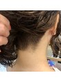 癖が強めのお客様です。襟足は内側を刈ってボリュームダウン。乾かすと広がるクセなので、前髪と根本は乾かして毛先はスタイリング剤を揉みこんで自然乾燥。リッジのきいたオシャレパーマ風スタイルに!