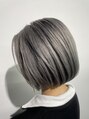 ブリーチ2回でつくるシルバーカラーのショートボブスタイル。コンパクトなシルエットに、透明感たっぷりのカラーが映えるデザイン♪ブリーチ毛でもダメージを最小限に抑え、艶っぽさと個性を両立。クールだけど柔らかい印象に仕上げました◎