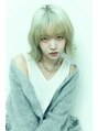 ハイトーンの外ハネボブ。少しだけ前下がりカットするのがポイントです!ブリーチはケアブリーチでダメージを最小限に。