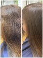 毎月白髪染めをして普段コテで髪を巻いている方なのでダメージを与えない様に低い温度でしっかりと縮毛矯正をしました。一人一人に合ったやり方でやらせていただいています。悩まれている方はご遠慮なくご相談下さい。