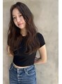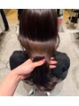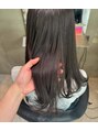 ブラウンカラーですが、透け感もありつつロングでも髪が綺麗にみえるカラーにしました!ロングヘアなので38ミリのコテを使って大きめカールの波巻きで動きを出しました!