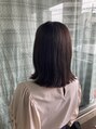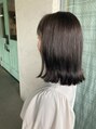 ぱつっとラインの鎖骨下~ミディアムロングの間くらいの長さにカットし毛先は動きが出やすいように毛量調整。カラーはクールなシルバーグレージュ7トーン(ブリーチなし)で、明るすぎず色落ちもオレンジっぽくなりにくくリタッチも気になりにくいカラーです