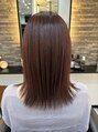 彩度の高い赤系カラーのツヤと、髪質改善によるツヤの相乗効果で美しい質感に仕上げました。アッシュなどのくすみのある透明感とは違う楽しみ方ができます。