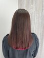 全体は暗めのベージュで染めて、インナー部分にはパキッとした発色がかわいいビビットなピンクカラーを被せました。(ブリーチ履歴1回)