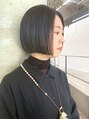 さりげなくオシャレなダークトーンのネイビーカラー。ぱつっとボブはカットラインにこだわって仕上げます◎
