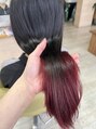 上は地毛ぐらい暗く染めて、赤のグラデーション♪毛先はブリーチで色を抜いてしっかり色が入るようにしました!!