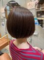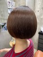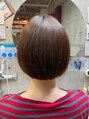 気持ち前上りのミニボブで切ることでよりショートカット感の出るミニボブスタイルです!すっきり耳にかけるだけでまた違う印象にもなれるお得スタイル♪色もツヤが出る透明感ブラウンベージュが柔らかい印象を与えてくれます!