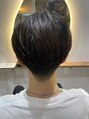 重さと軽さのバランスを大事にカットしたセンターパートです。前回かけたパーマがのこっていて毛先を流すのベストな毛流れです。横と後ろはすっきりと刈り上げ。