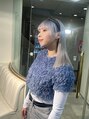 丁寧にしたケアブリーチのベースにうすーーーく青を入れることでうるさすぎない絶妙なブルーカラー☆透明感溢れて可愛い!!