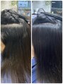 半年振りのお客様で伸びた部分だけ縮毛矯正しました。基本的にしっかり縮毛矯正をかければ半永久的に持続しますので、伸びた部分だけ縮毛矯正をかける事になります。その方がダメージも無いので何回も毛先まで縮毛矯正をするのはオススメしません。