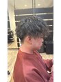 ツイストスパイラルパーマ。ツーブロックと後ろの刈り上げは3ミリでしてます。細かいランダムな動きでどの角度から見てもキマるシルエットになっています。