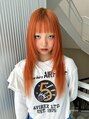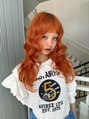 橙色。根元はブリーチなしのブラウンです!顔周りに似合わせたレイヤーカットもポイント。前髪/アンブレラカラー/ウェーブパーマ/ベリーショート/ダークアッシュ/ニュアンスパーマ