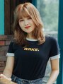 ブロンドヘアに、大きめのカールを全体にいれた、外国人風のスタイル。前髪は重めのスタイルにすることで、多様な顔立ちにも似合うようにアレンジしています。巻きも細かくまくのではなく、まとめて大きく巻くのが最近のトレンド