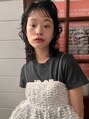 透け感のあるブラックに大きなゆるいカールで夏にぴったりな涼しげなデザインにしました。前髪/アンブレラカラー/ウェーブパーマ/ベリーショート/ダークアッシュ/ニュアンスパーマ