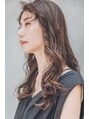 胸上のロングヘア顔まわりにアクセントを、出すためにハイライトとパーマで動きを重たくなりやすいロングヘアに可愛さをプラス