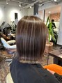 細めハイライト小顔大人可愛い外ハネマロンベージュミディ/ホットペッパービューティー