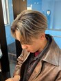 バレイヤージュをすることで暗い所と明るい所で陰影を作ることで自然な立体感のあるスタイルに仕上がります。センターパートとの組み合わせが抜群です。(町田/町田駅/町田美容室/メンズカット/ニュアンスパーマ/ハイトーン/ベージュ/ダブルカラー)