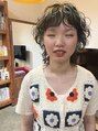 柔らかな質感のパーマスタイル。ハイライトをプラスしてより立体的に。黒髪ウルフをベースにトレンド感たっぷりなヘアデザイン。パーマをかけたセミディヘアはアレンジもしやすく、結んだりもでき、扱いやすいヘアスタイル