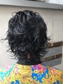 襟足部分、顔周り部分共に長さを残し気味で全体にパーマをオン。色気のある大人の男性にも◎ 様々なデザインの中から、どんなデザイン、髪型が自分に合うか迷ってる方はお気軽にご相談下さい!
