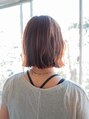 肩につかないくらいのぷつっとボブ。毛先をすきすぎない少し重めのスタイル。前髪は目にかかるギリギリくらいの長さで、透け感のある薄めのバングになっています。サイドは外に流れるようにカットしているので巻いた時にナチュラルに仕上がります!