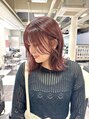 ブリーチベースにチェリーレッドカラーカットは鎖骨くらいの切りっぱなしロブ