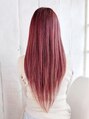 ツヤ感のあるハイトーンピンクカラーのさらっと落ちるナチュラルストレートスタイル★顔まわりのレイヤーが毛先に動きと軽さを出す人気のスタイル♪