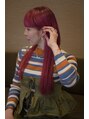ローレイヤースタイル。広めなバングとチェリートピンクがオシャレで可愛さUP。ストレートでもゆる巻きでもどちらも可愛く相性抜群。個性を活かしたピンクヘア!