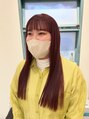 1ブリーチでred*濃いめの暖色カラーは1ブリーチ、色が抜けにくい方でもキレイに染まりやすいカラーです*毛先はぱつっと、前髪はお顔に合わせたラウンドでぱつっと*
